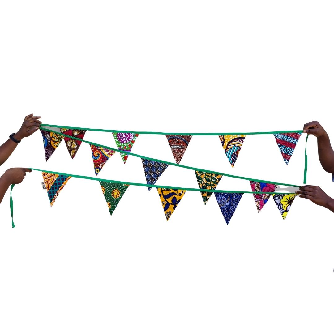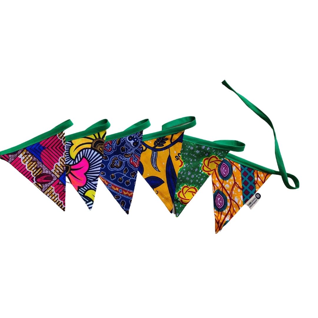 De slinger is 5 meter lang en heeft 15 vlaggetjes in verschillende kleuren stoffen | 100% katoen