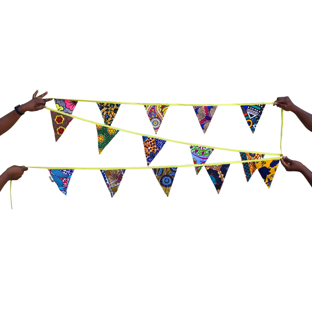 De slinger is 5 meter lang en heeft 15 vlaggetjes in verschillende kleuren stoffen | 100% katoen.